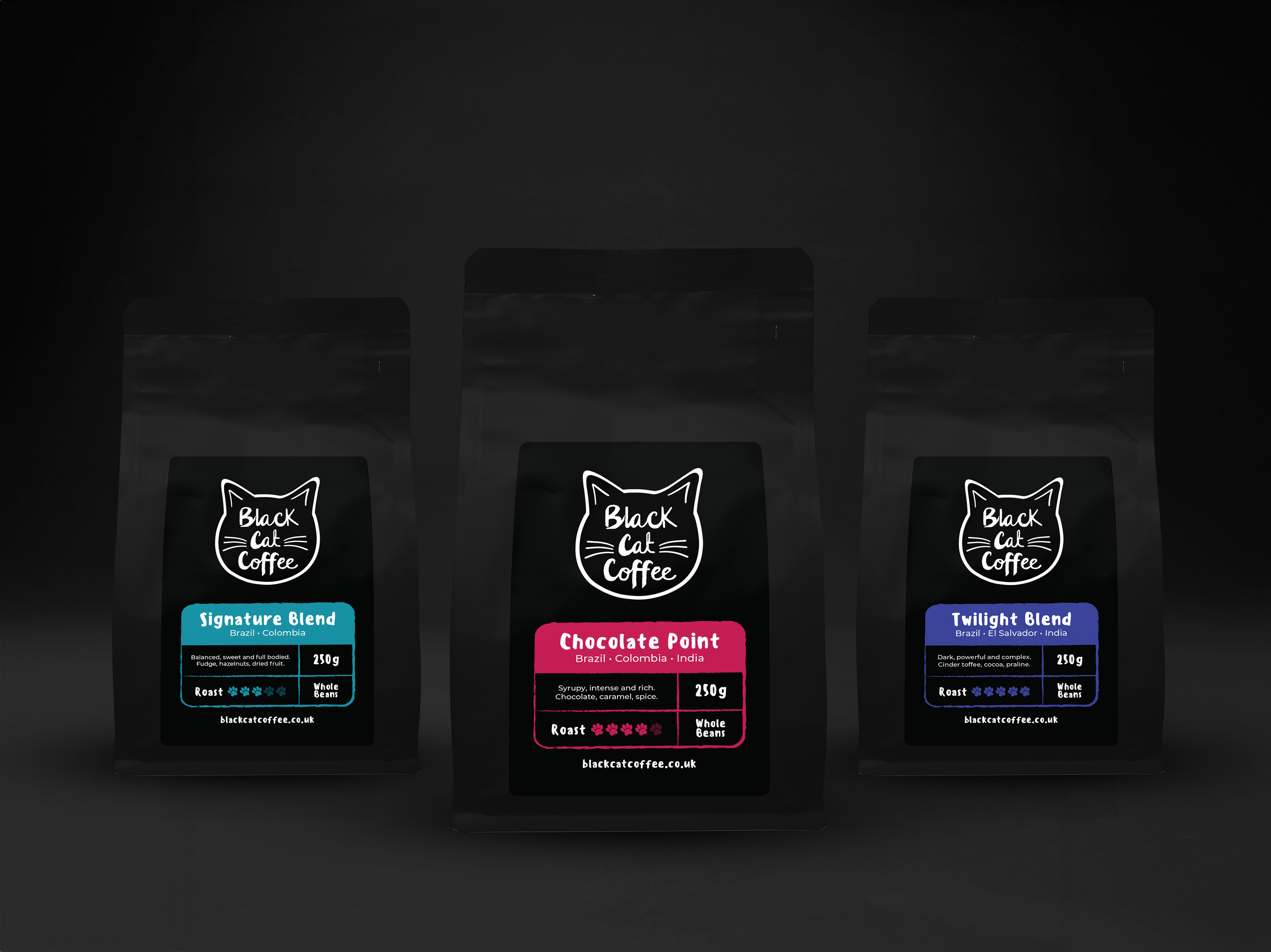 Created bespoke label designs for Black Cat Coffee's